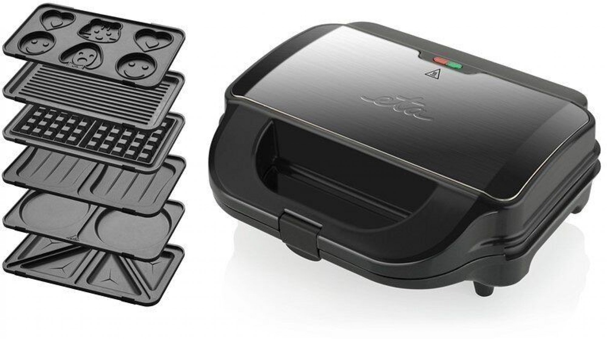 Zvládne prácu štyroch prístrojov naraz. Jednoducho s ním pripravíte vafle, toasty, jednohubky, panini či niečo z grilu. Základnú súpravu 4 platničiek možno rozšíriť až na 12 kusov.